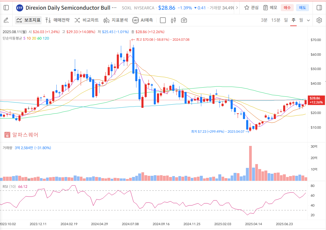이러한 반도체 시장의 구조적이고 필연적인 상승 흐름에 대한 확신이 있다면, 우리는 이익을 극대화할 수 있는 도구를 활용해야 합니다. 그것이 바로 SOXL입니다.
