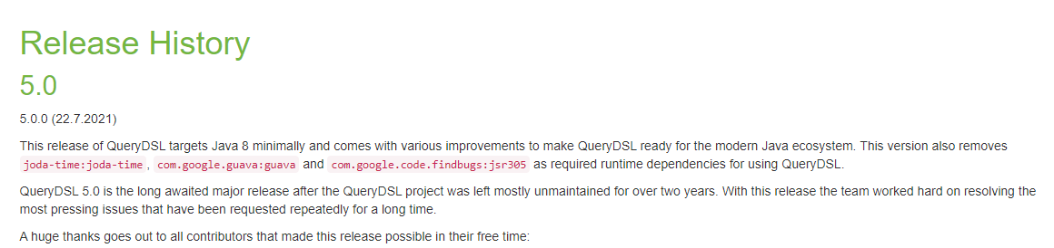 그리고 joda-time과 google의 guava 런타임 dependency를 제외하였다고 하네요..