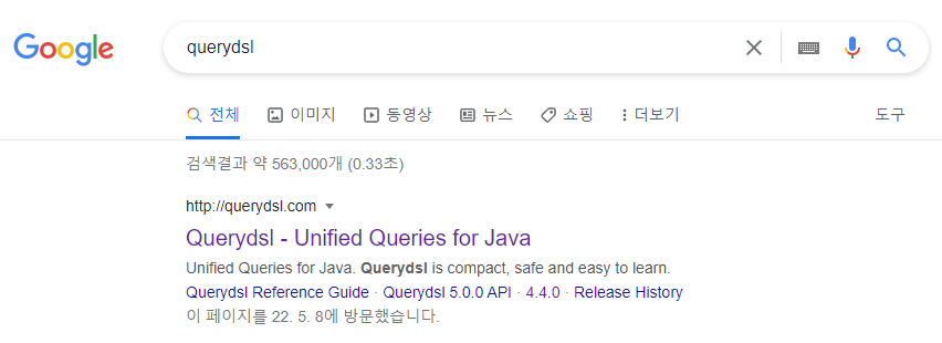 구글의 검색창에 아래와같이 "querydsl" 이라고 검색을 해볼께요..