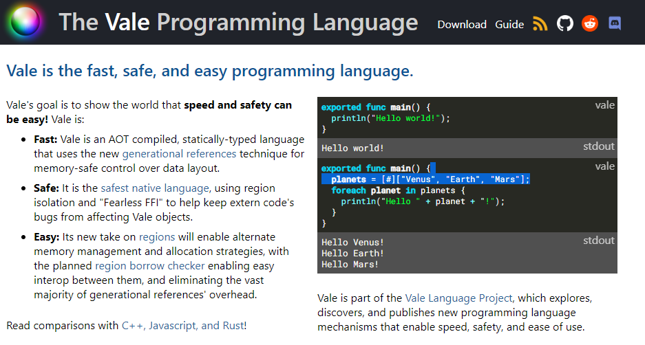 즉, Vale 언어는 빠르고, 안전하고, 쉬운 프로그래밍 언어라고요..