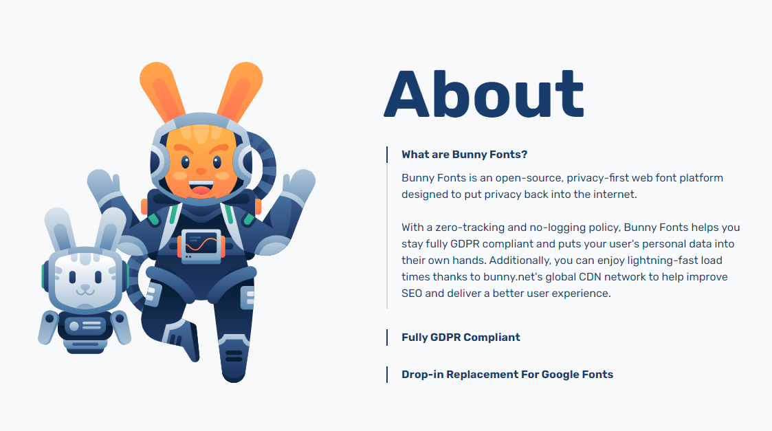 홈페이지에서는 Bunny Fonts를 아래와 같이 설명하고 있었습니다.